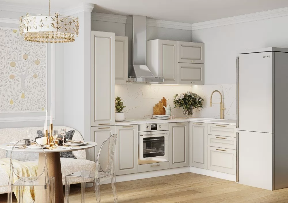 Кухонный гарнитур «Кимберли» длиной 150 см Дуб Крафт золотой, Крем