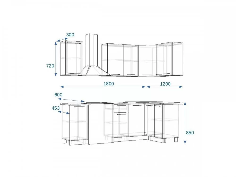 Кухонный гарнитур Адажио оптима 1800х2400 мм