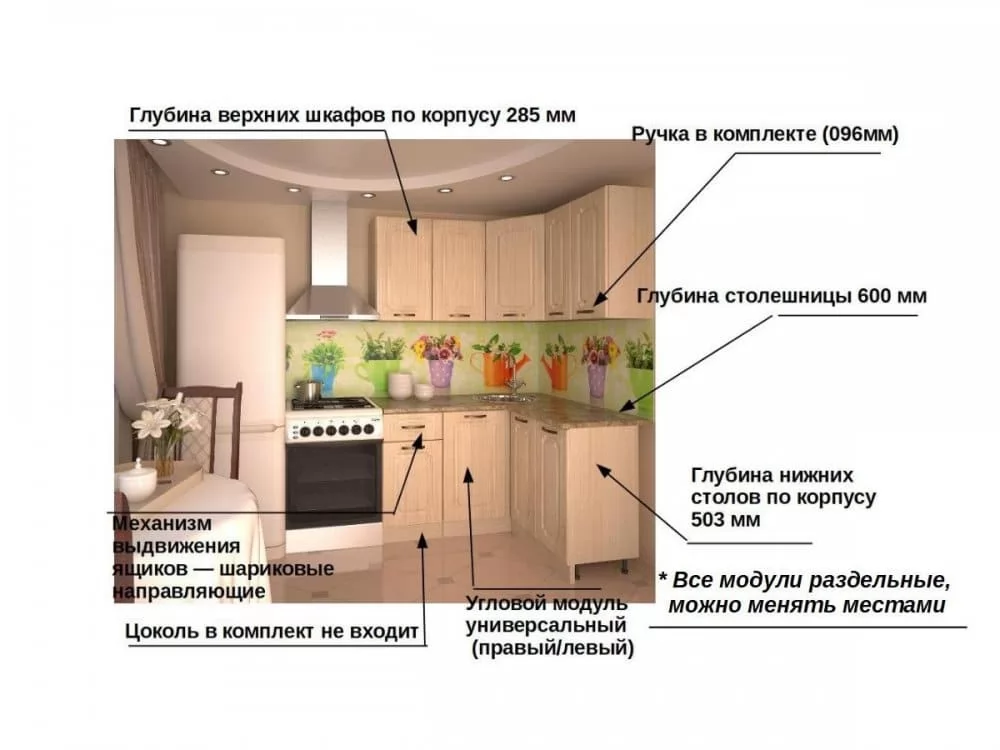 Кухонная мойка, стеновая панель, посудосушитель, цоколь, планки для столешницы в комплект не входят.