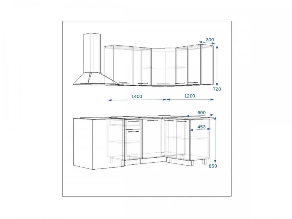 Кухонный угловой гарнитур 14, 1200x1400, левый, Грецкий орех