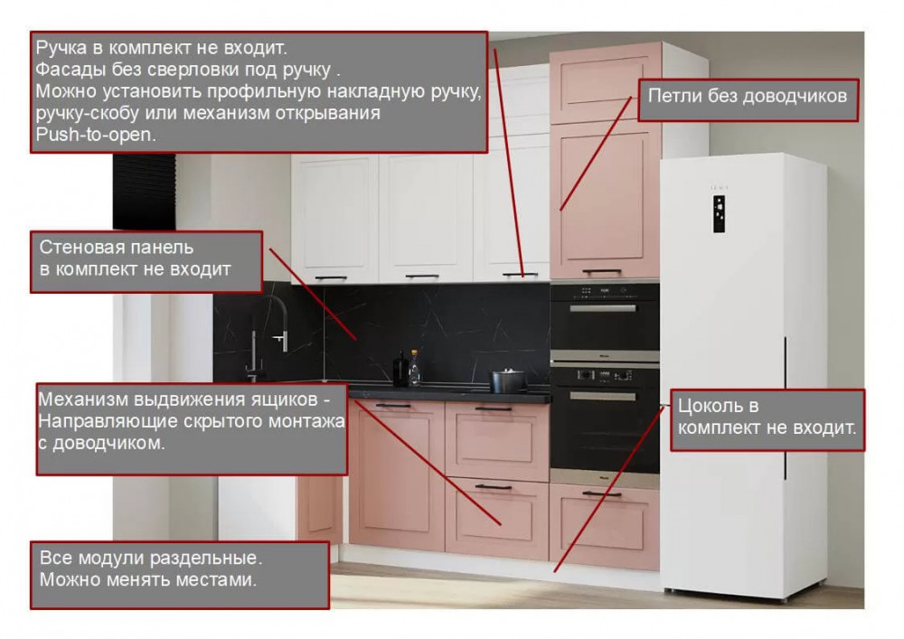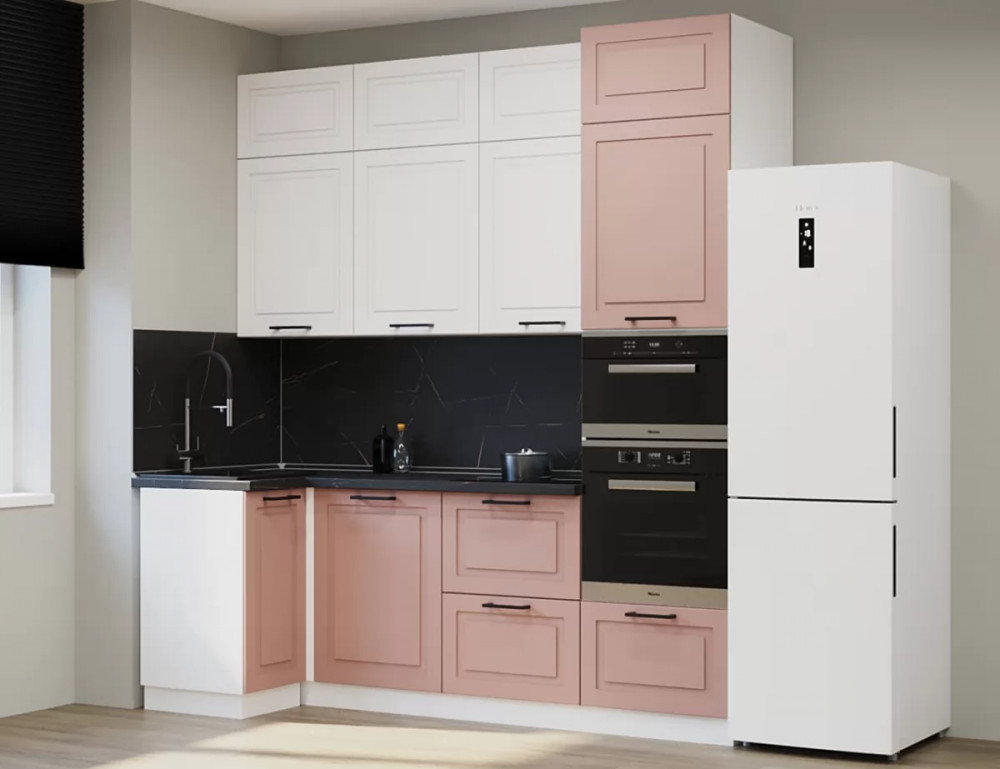 Кухонный угловой гарнитур Аликанте арт.1, 1000х2400 мм, Шарли белый/Шарли Pink