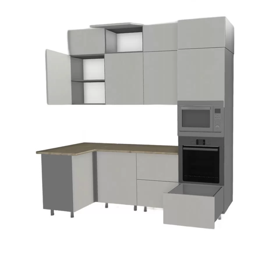 Кухонный гарнитур «Кимберли» длиной 180 см со шкафом НБ Белый, Сноу, Титан