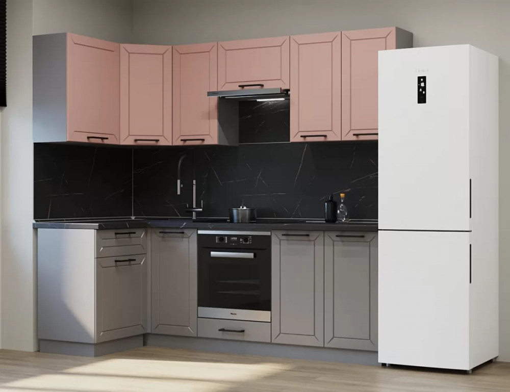 Кухонный угловой гарнитур Аликанте арт.34, 1000x2400 мм, Обсидиан/Шарли Pink