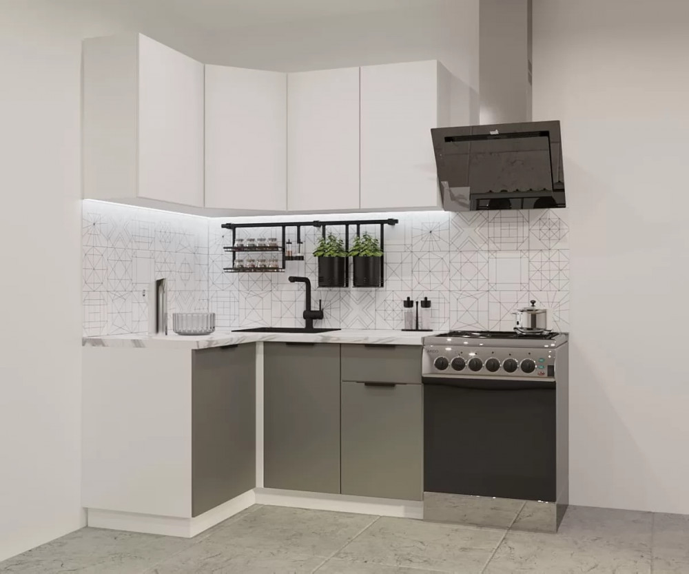 Кухонный угловой гарнитур арт.1, 1200x1400 мм, Фаска/Тальк/Обсидиан