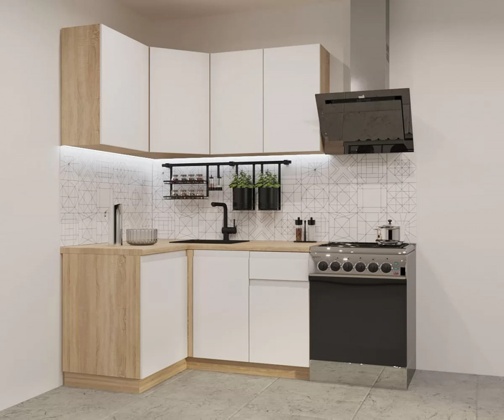 Кухонный угловой гарнитур арт.1, 1200x1400 мм, Лайн/Тальк