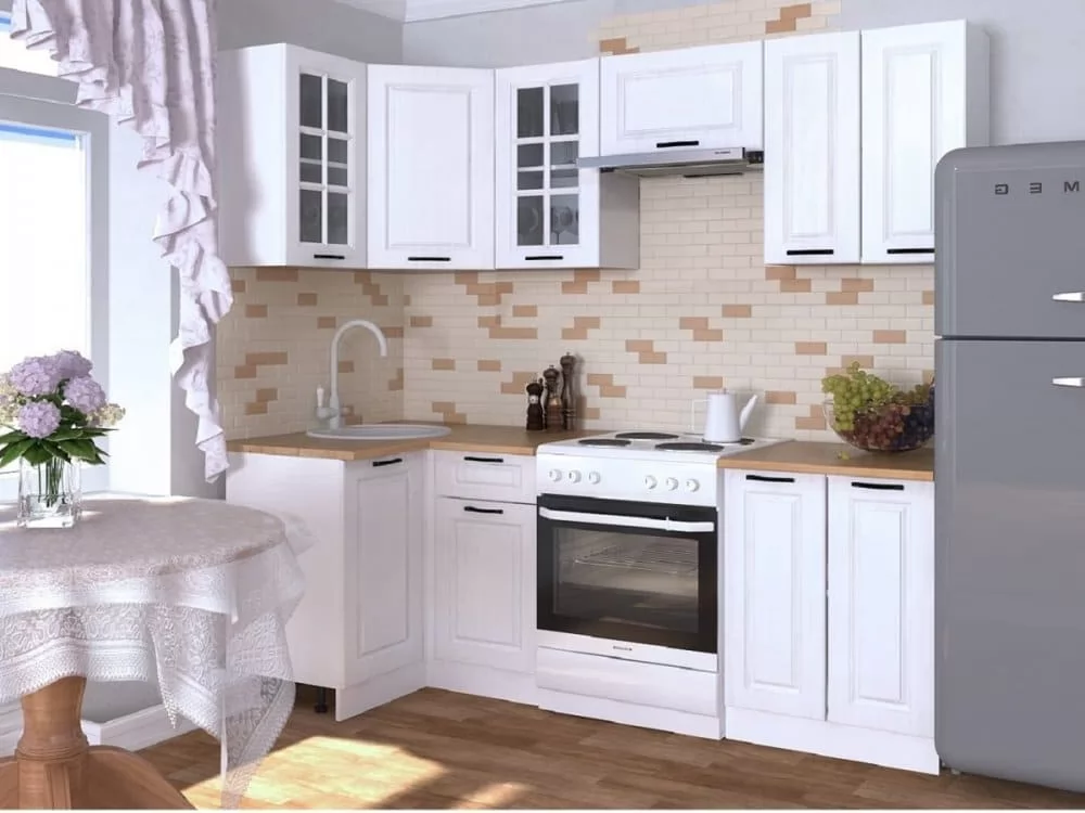 Кухонный угловой гарнитур арт.8, 1600x1200 мм, Белый/Вегас