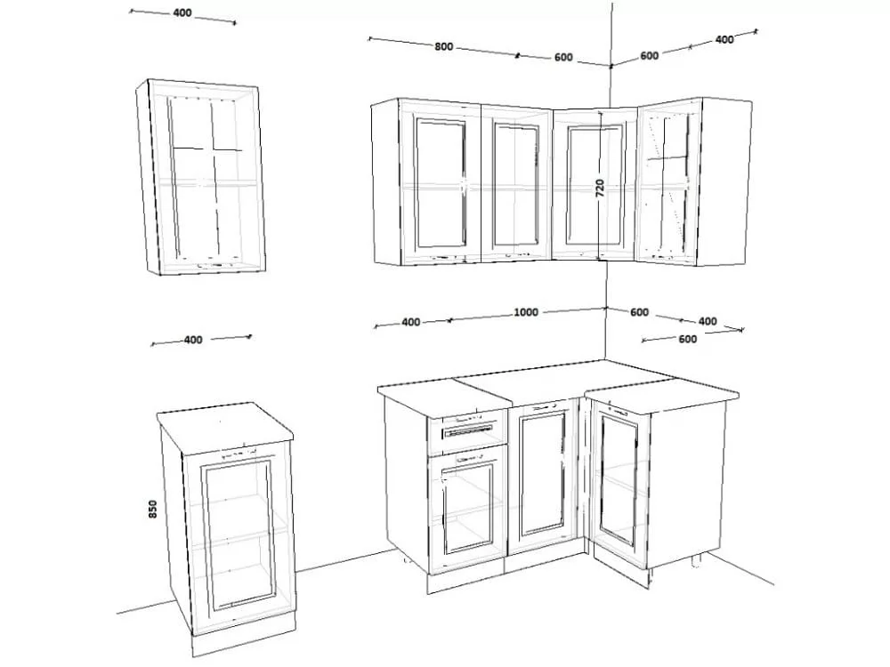 Кухонный угловой гарнитур арт.8, 1600x1200 мм, Белый/Вегас