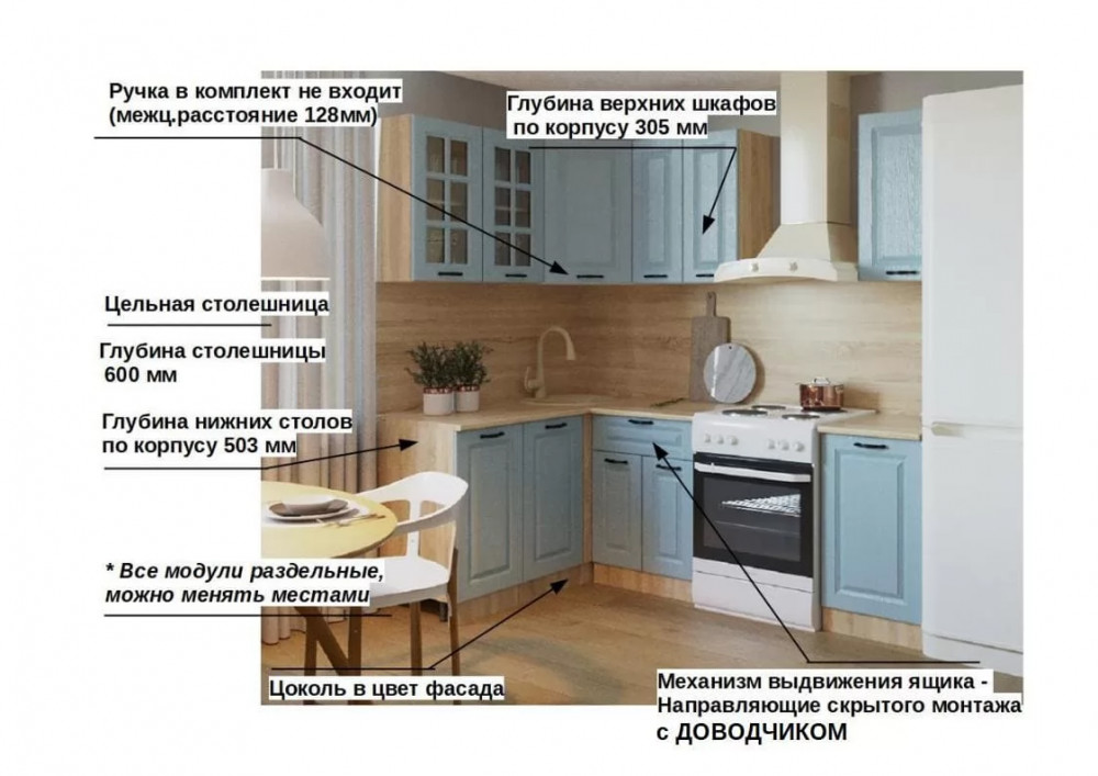 Кухонный угловой гарнитур арт.4, 1200x1600 мм, Роял Вуд Голубой/Вегас