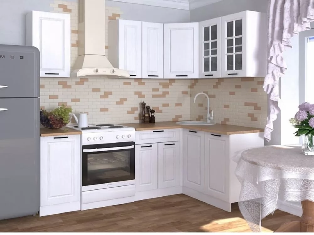 Кухонный угловой гарнитур арт.8, 1600x1200 мм, Белый/Вегас