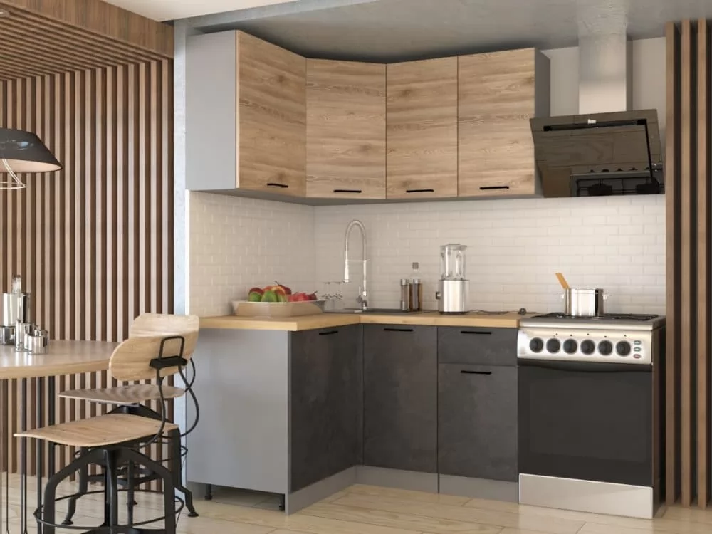 Кухонный угловой гарнитур арт.15 ЛОФТ,1200x1800 мм, Бетон тёмный/Рустик соломенный
