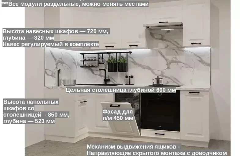 Кухонный угловой гарнитур арт.3, 1000x2450 мм, Тальк/Вегас