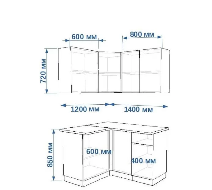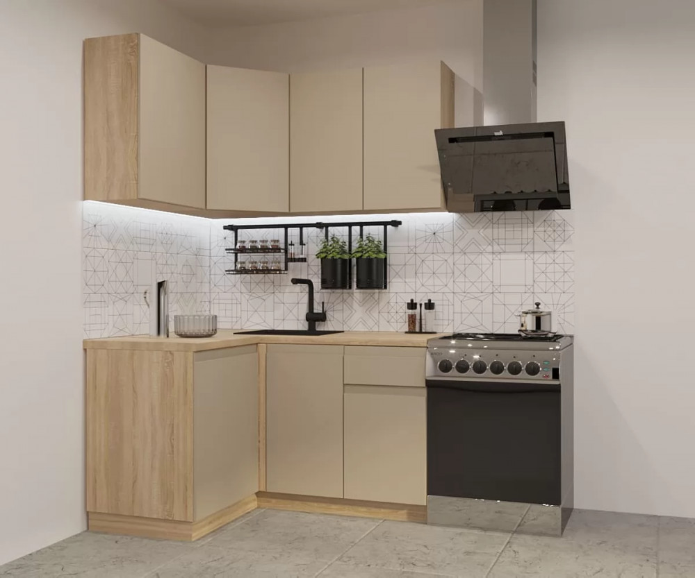 Кухонный угловой гарнитур арт.1, 1200x1400 мм, Лайн/Тальк
