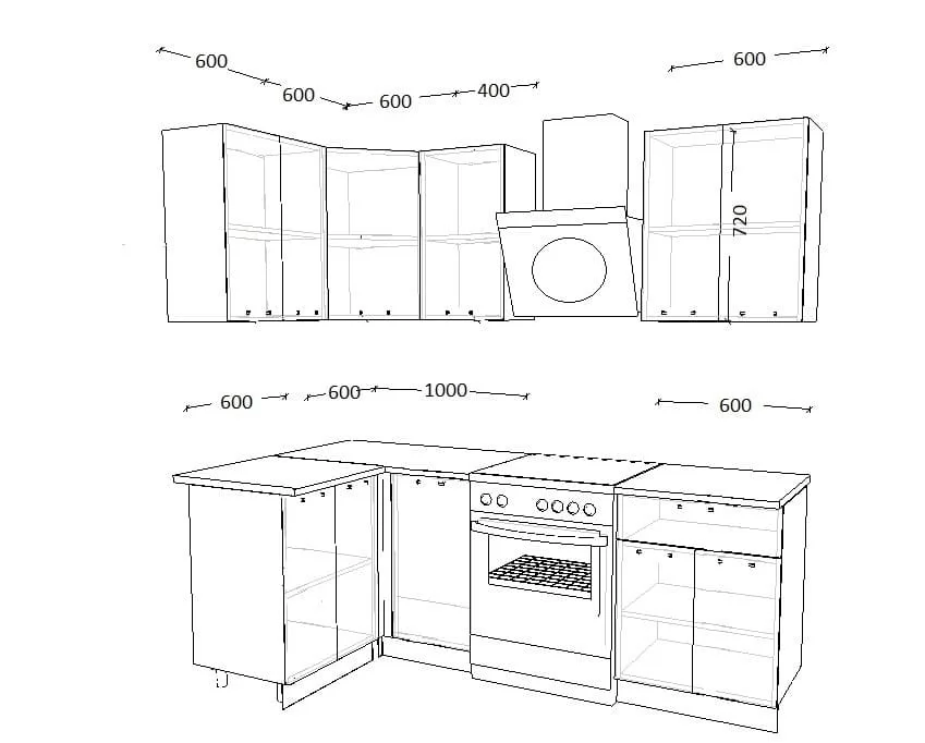Кухонный гарнитур Шампань-1000 столешница 26 мм