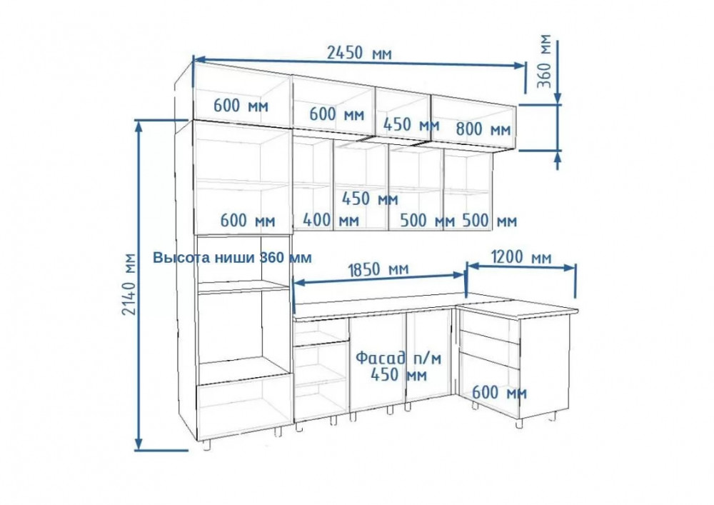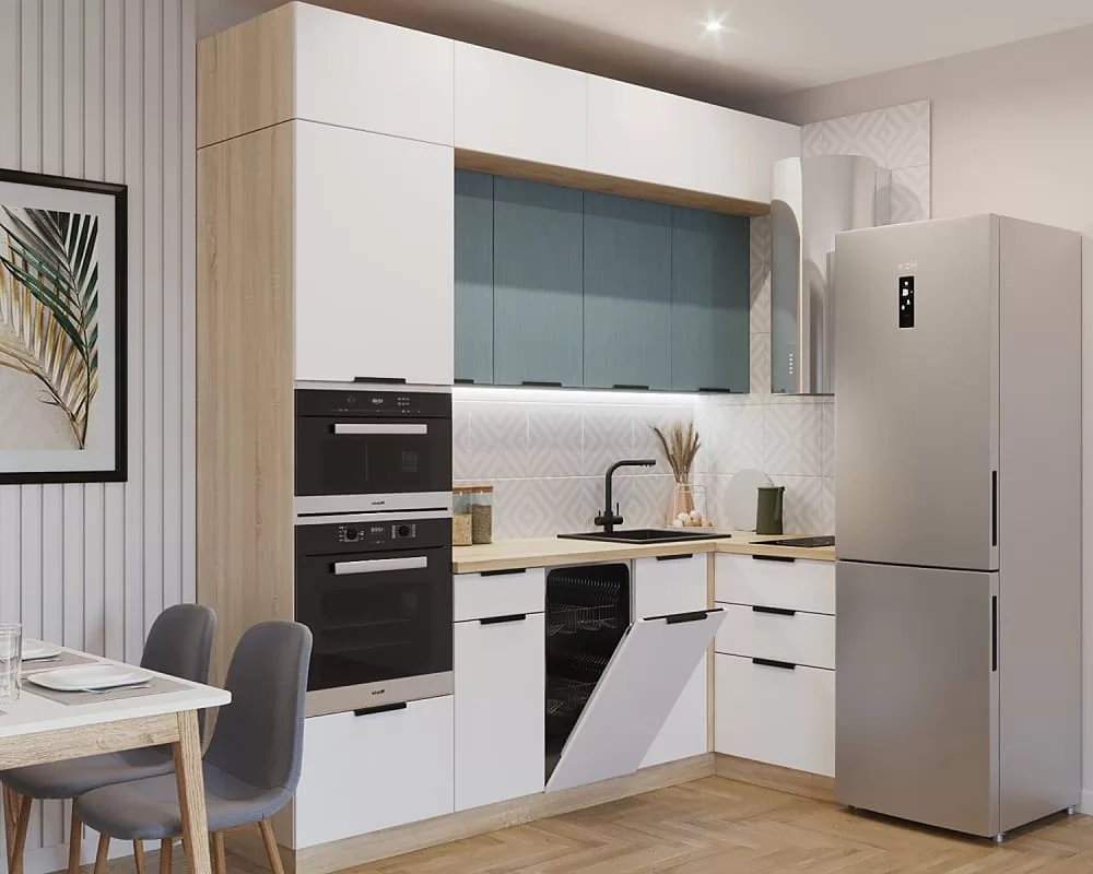 Кухонный угловой гарнитур арт.6, 2450x1200 мм, Тальк/РоялВуд Голубой