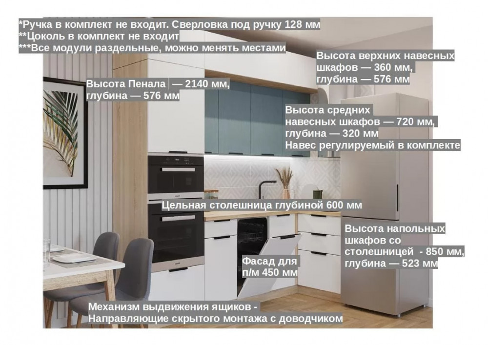 Кухонный угловой гарнитур арт.3, 1000x2450 мм, Тальк/Вегас
