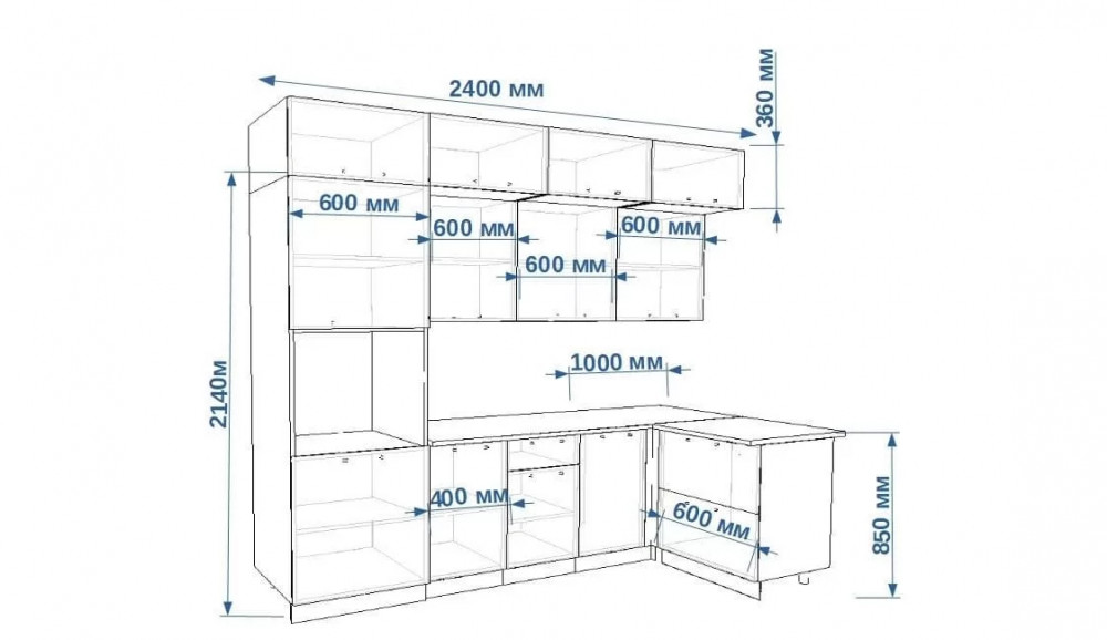 Кухонный угловой гарнитур арт.7, 2400x1200 мм, Океания/Кристалл