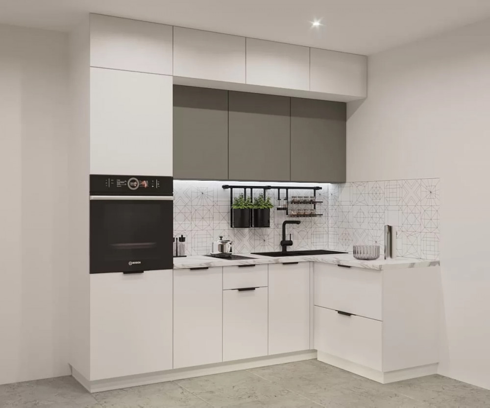 Кухонный угловой гарнитур арт.1, 1200x1400 мм, Фаска/Тальк/Обсидиан
