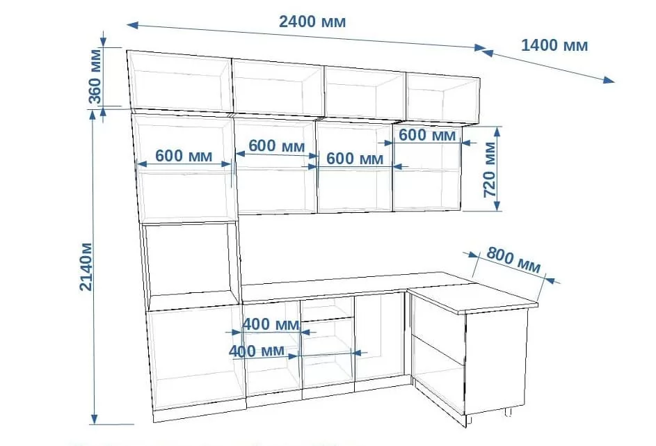 Кухонный угловой гарнитур арт.10, 1200x2400 мм, Фаска/Тальк