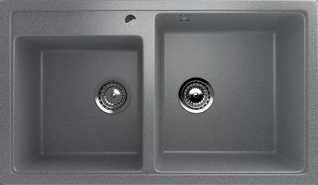 Двухсекционная моика с отверстием под смеситель. Логистическая информация: картонная коробка (ШхГхВ) 940х570х290, 0,155м3, брутто 31,2кг. Гарантия: 2 года. Комплект для установки (герметик, сливная арматура с гофротрубой)