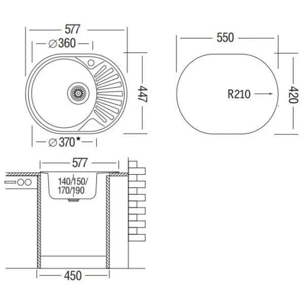 Овальные мойки Фаворит в контрасте со строгими прямыми углами мебели придают особый оттенок кухонному пространству.
