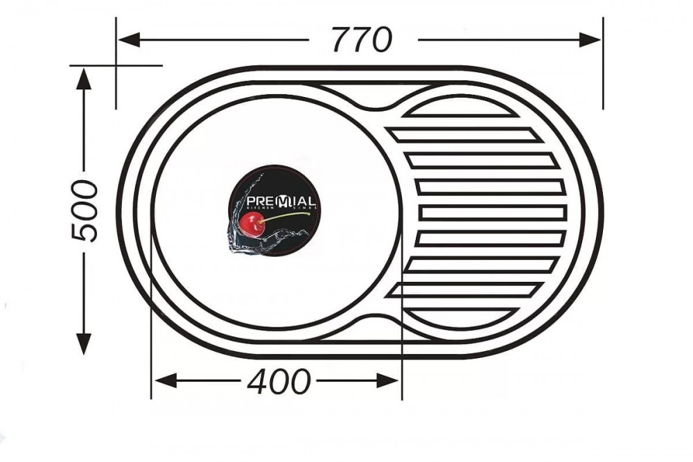 Модель PL7750 — овальная врезная мойка с круглой чашей диаметром 40 см и овальным ребристым крылом (реверсивная модель). Толщина стали 0,8. Глубина чаши 18см. Мойка со сливным отверстием 3 ½″ укомплектована выпуск-сливной «корзинкой» с решеткой 114 мм из нержавеющей стали с затвором и резьбой 11/2″. В комплект фурнитуры входит также белый бутылочный сифон из АБС-сополимера, гофра с переливом, уплотнитель и монтажные клипсы для крепления мойки к столешнице. Минимальная база для установки — 73х46 см