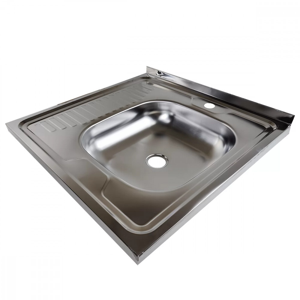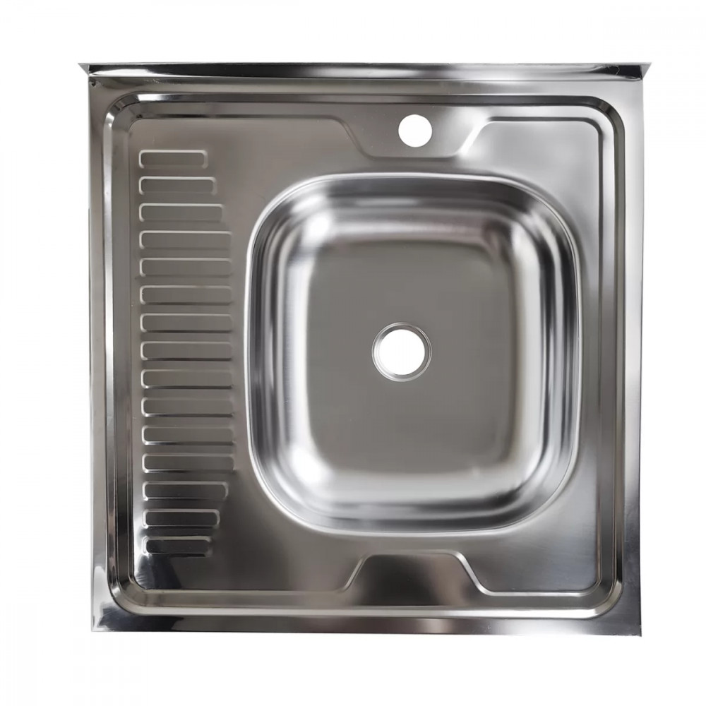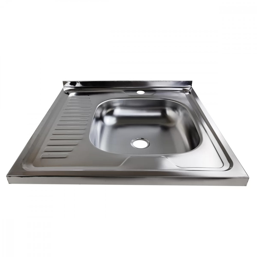 Классическая мойка с большой чашей и коротким крылом, без перелива, выпуск малый, глубина чаши 140 мм, правая