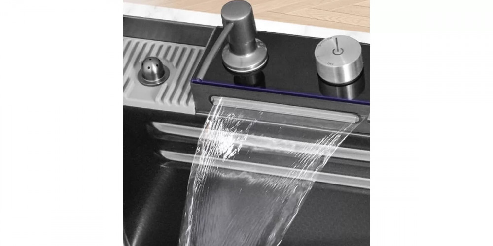 У модели 4 режима излива воды: встроенный смеситель Flagman с выдвижной лейкой (ламинар, спиральный душ, пульверизатор), душ-вуаль Veil, душ-водопад (вспениватель) Flow, многоструйный ринзер для ополаскивания стаканов. Управление осуществляется клавишами типа «фортепиано».