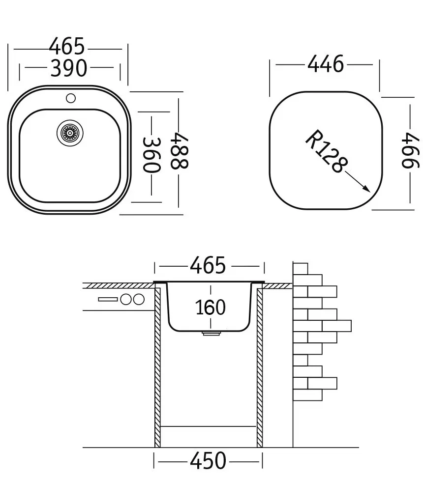 Ширина мойки, мм - 465