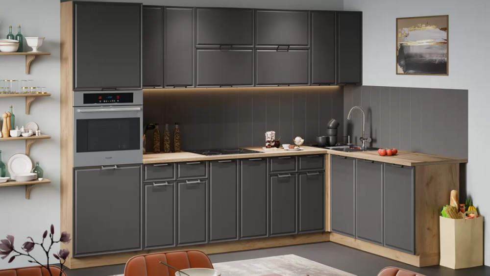 Модульная кухня «Белладжио» Дуб Крафт золотой, Фон белый, Софт графит
