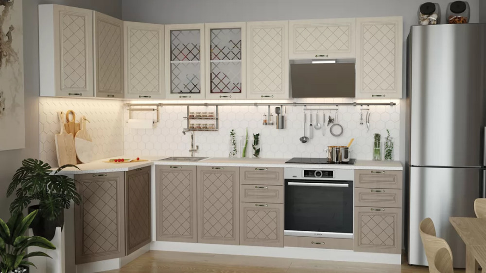 Модульная кухня «Бьянка» Дуб крафт золотой/Дуб ваниль/Дуб кофе