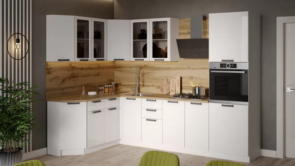 Модульная кухня «Детройт» Белый/Белый глянец/Дуб крафт золотой