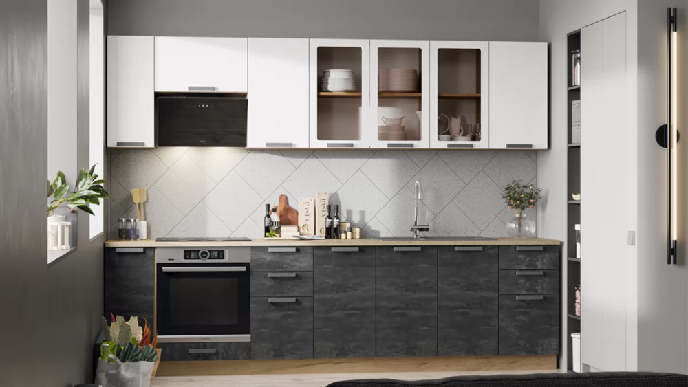 Модульная кухня «Детройт» Белый/Белый глянец/Угольный камень