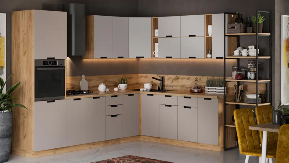 Модульная кухня «Гренада» Дуб Крафт золотой, Холст мокко, Холст латте