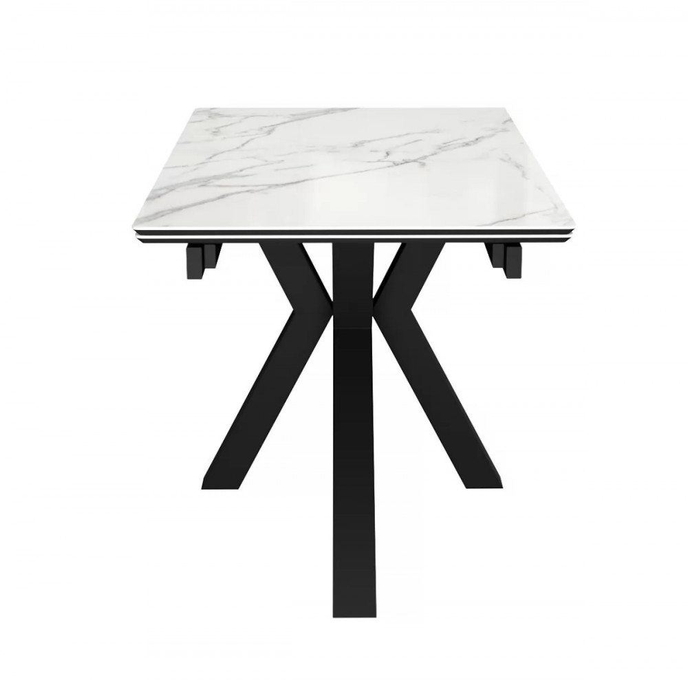 Столешница выполнена из: керамики глянец (5,6 мм) + МДФ. Рама металлическая, крашенная. Подстолье: опоры металлические.