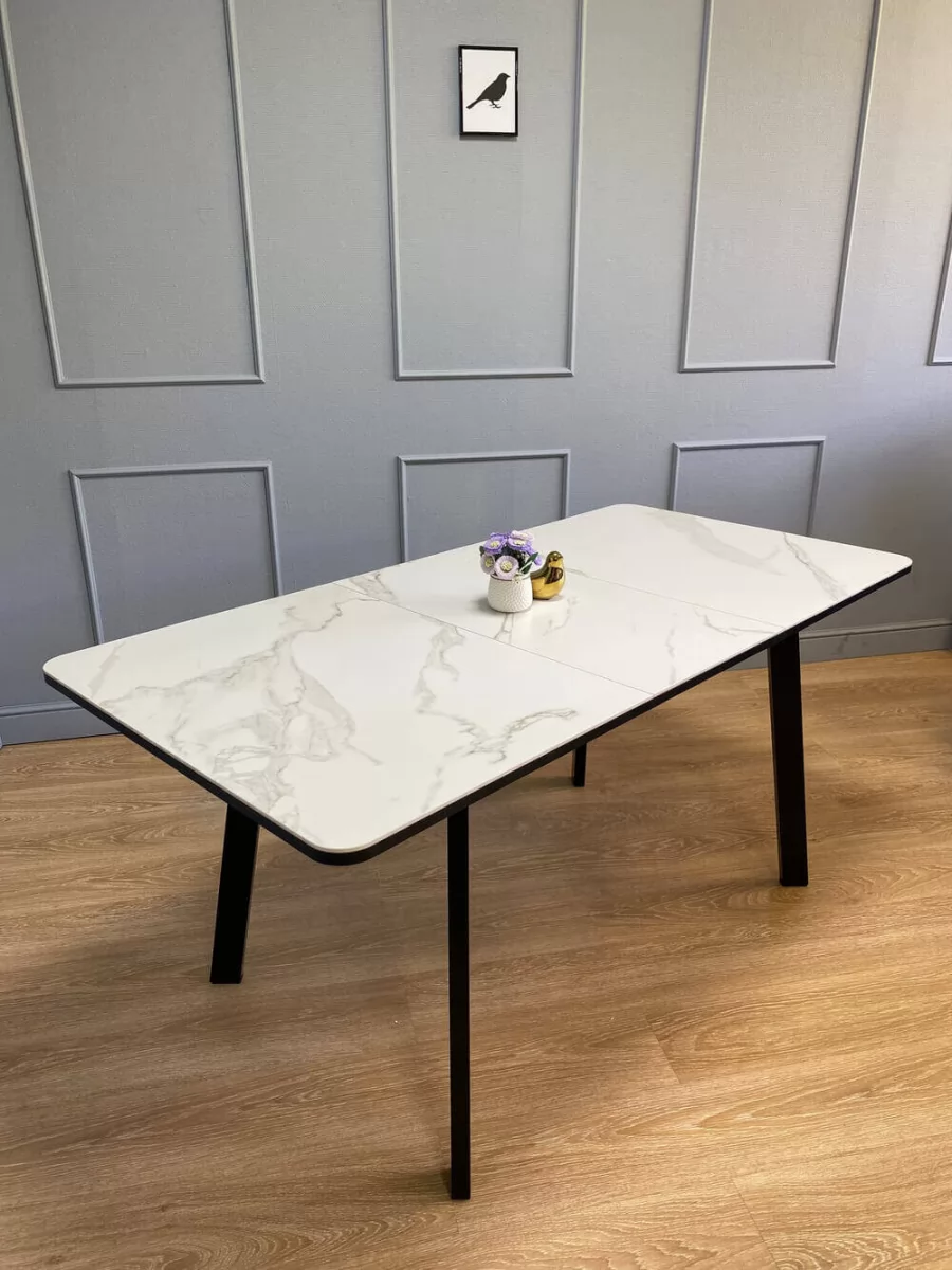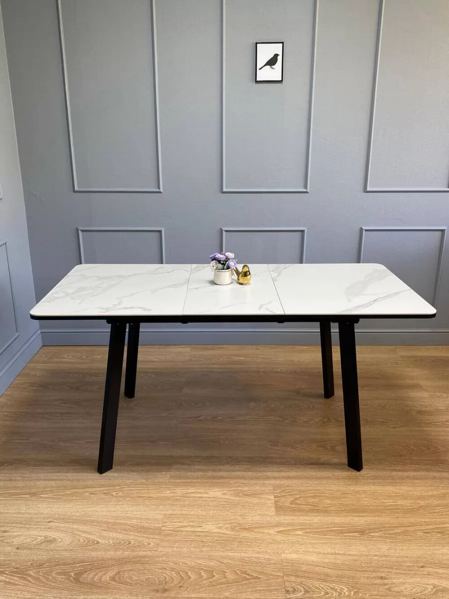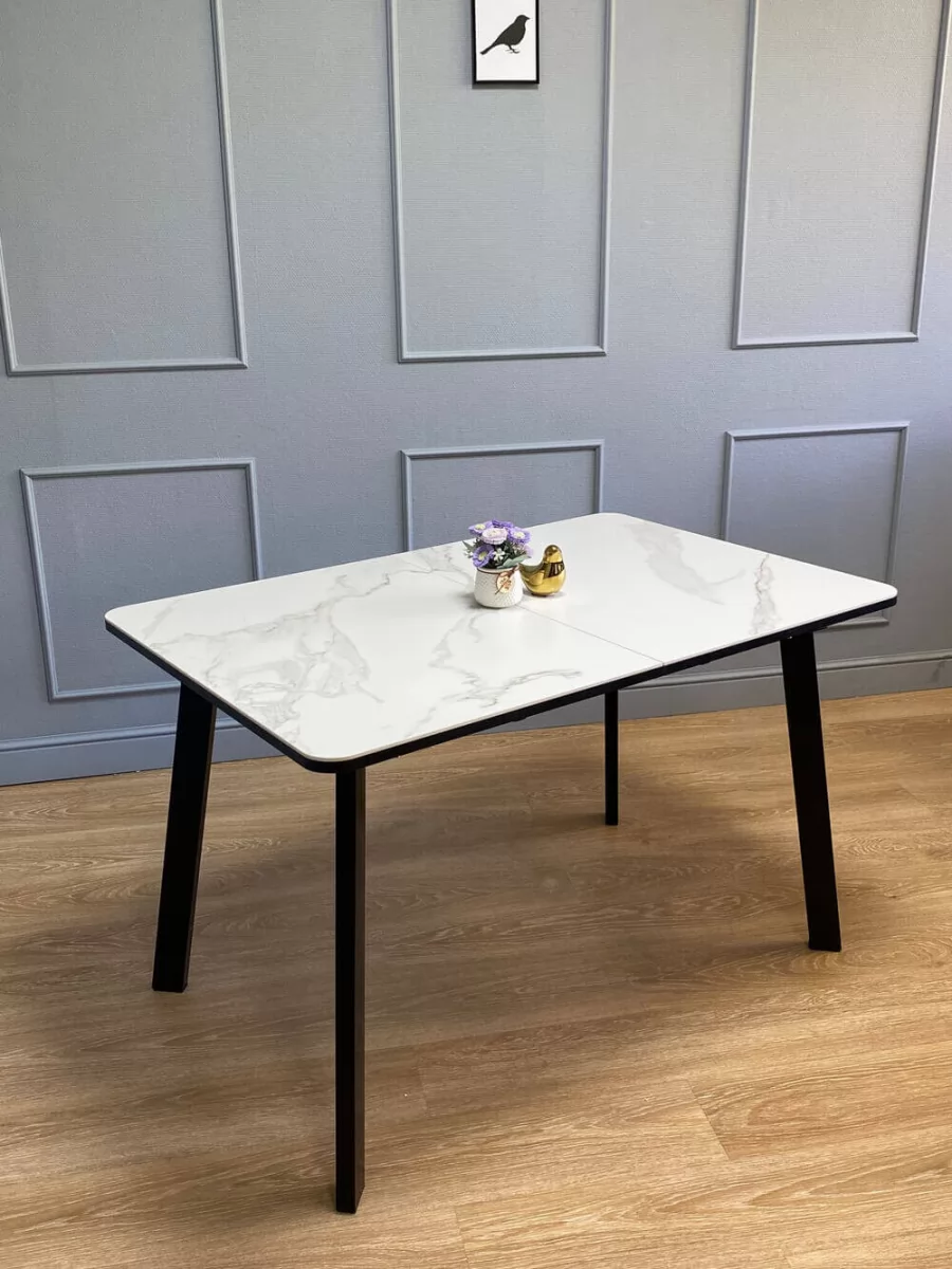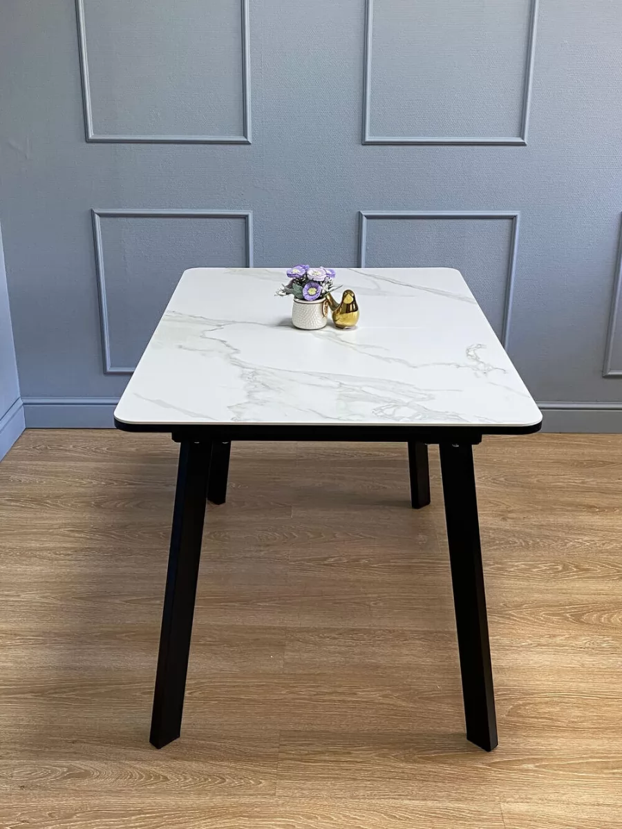 Стол Kenner AA 1200 чёрный/керамика мрамор белый