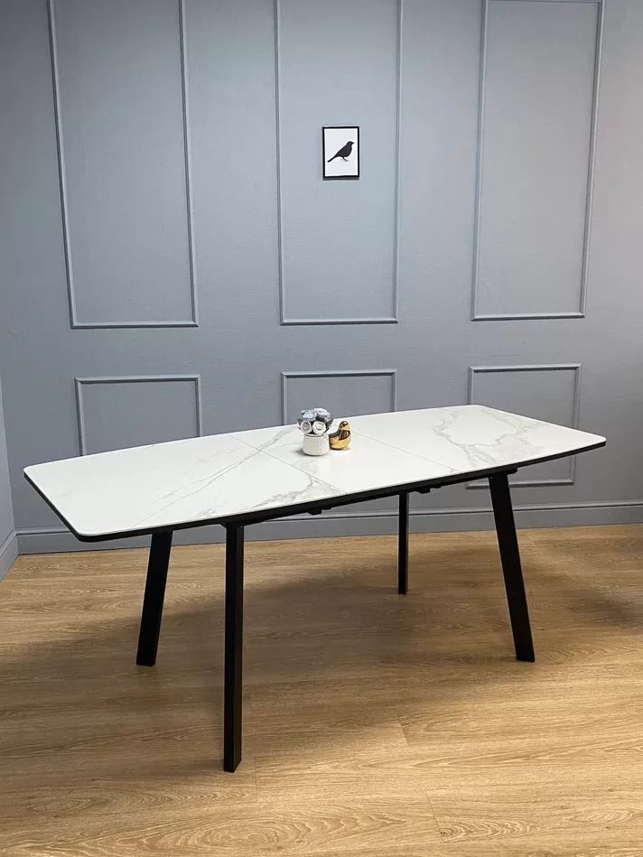 Стол Kenner AA 1400 чёрный/керамика мрамор белый