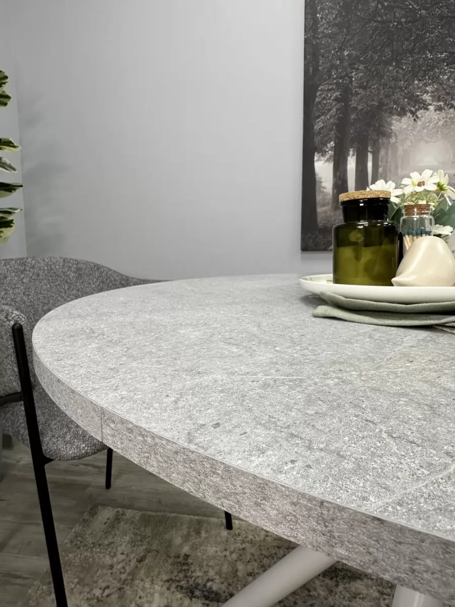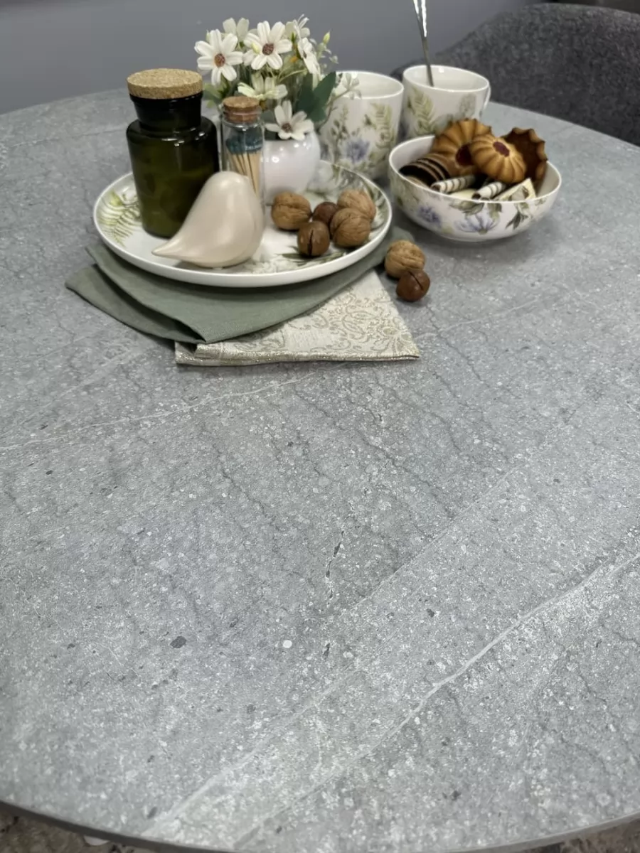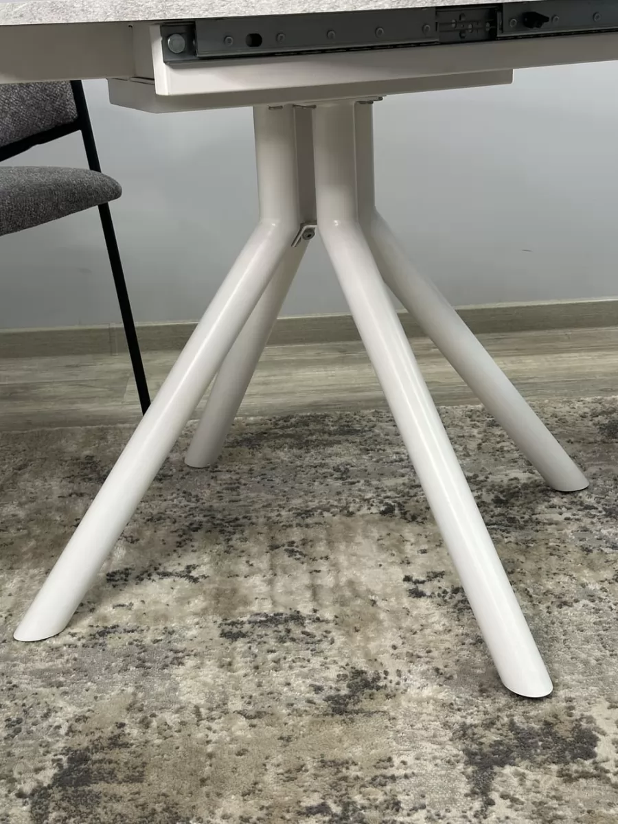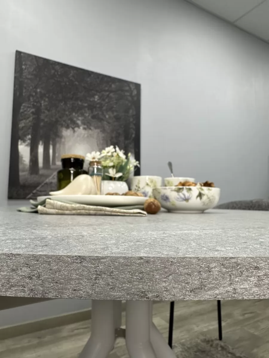 Стол с надежной столешницей из ЛДСП EGGER Premium 2024, с глубокой интересной текстурой, устойчивой к большинству кухонных неурядиц. Большая вставка позволяет с комфортом усадить гостей. Опоры оставляют максимальное пространство для ног в зоне коленей, удобно высоким людям.