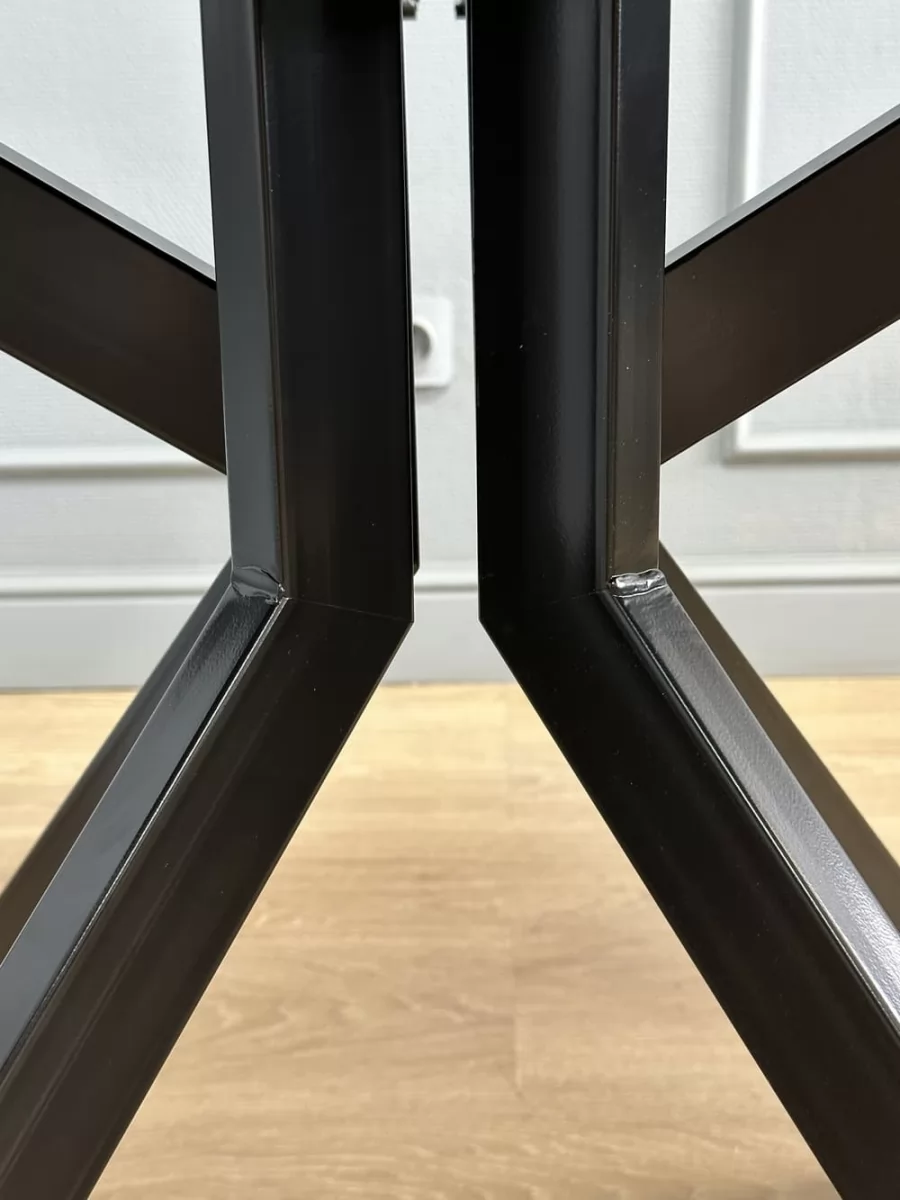Идеальный стол для размера 1,1 м (в сложенном виде) Основное преимущество – в системе раскладки вместе с опорами. Опоры стола в разложенном виде не мешают сидеть, позволяют сделать большую вставку и, главное, столешница в разложенном состоянии так же крепка и надёжна, как и в сложенном, тогда как обычно раскладка стола уменьшает устойчивость столешницы к нагрузкам из-за большего плеча