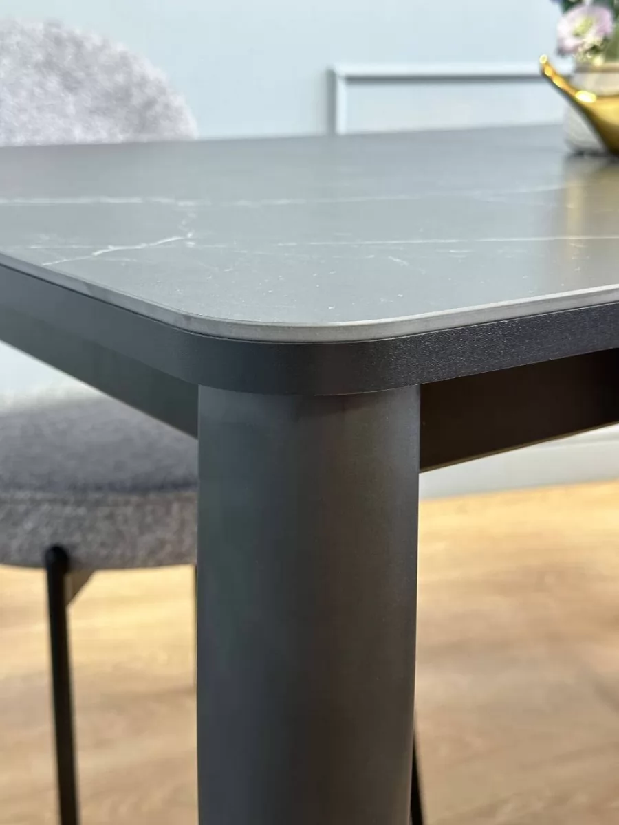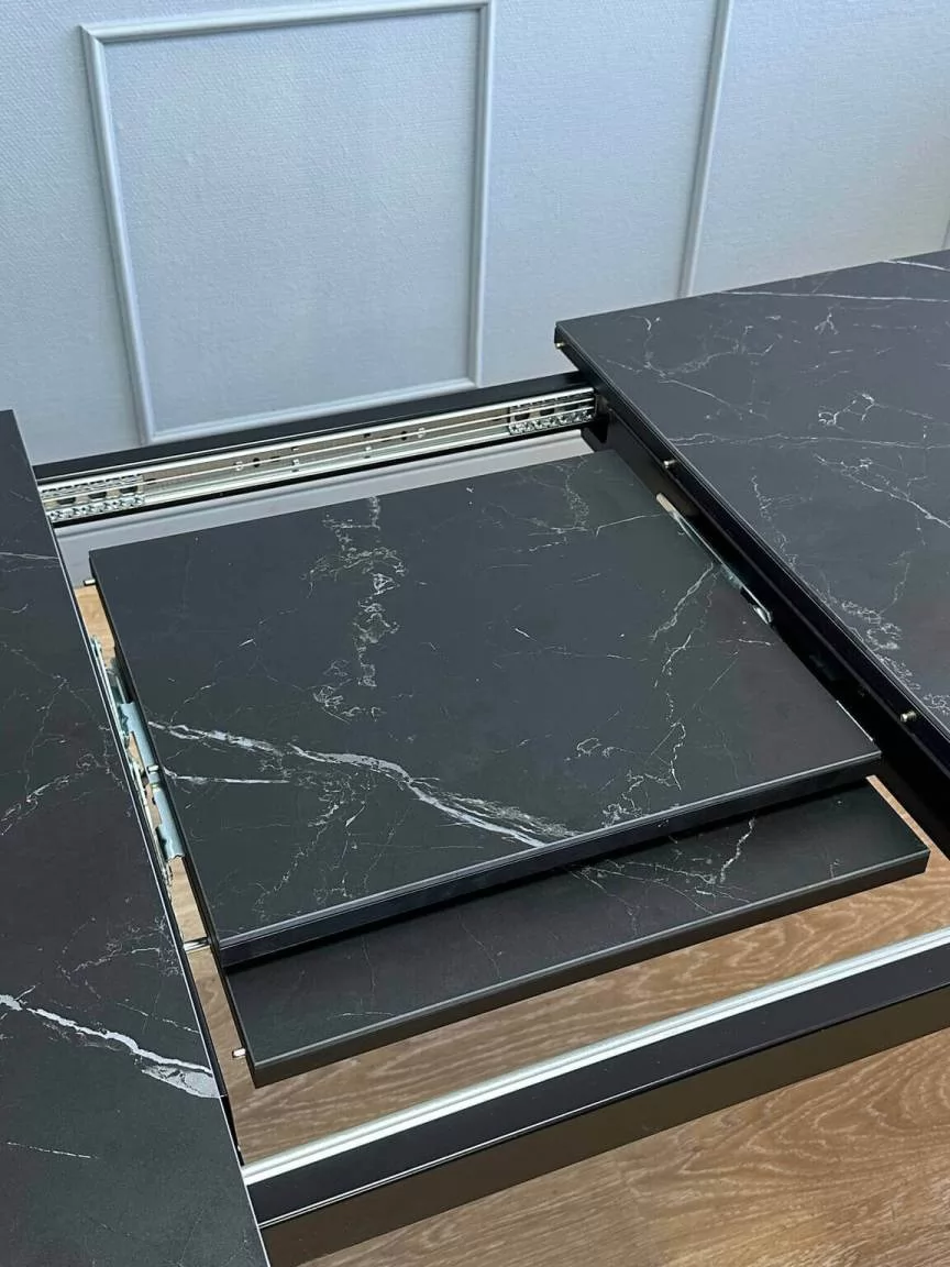 Стол с керамической столешницей и красивыми, функциональными опорами. Керамических столов такого размера очень мало, а размер 120*80 см оптимален для кухни до 13 м. Система раскладки увеличивает стол еще на 45 см благодаря синхронному механизму раздвижения и прогрессивного механизму вставки "дельфин". Вставка с керамикой очень тяжелая и требует специального механизма, предназначенного для керамики. Стол сможет разложить даже ребенок