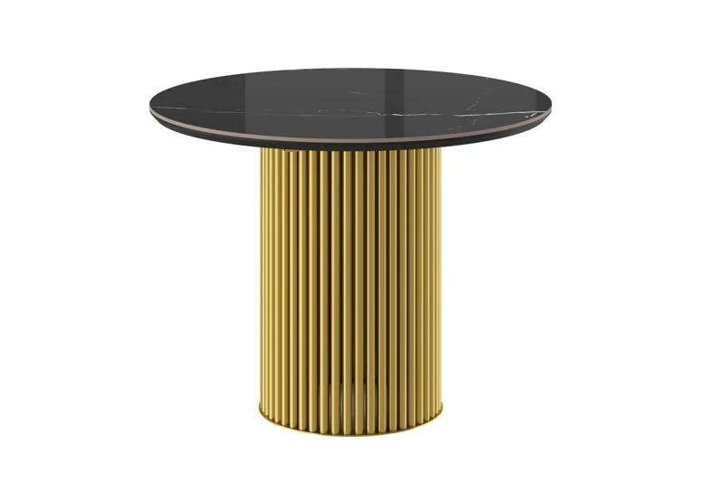 Стол нераздвижной ASKAR ROUND-116 (d-116мм), Керамика MARQUINA BLACK GLOSS PREMIUM CER, мет Золото