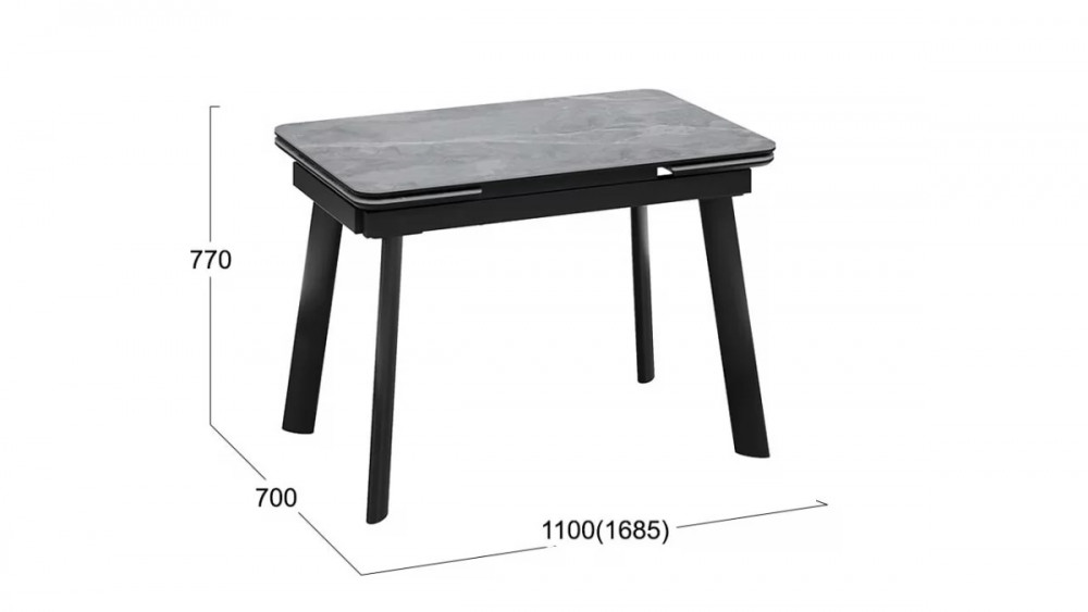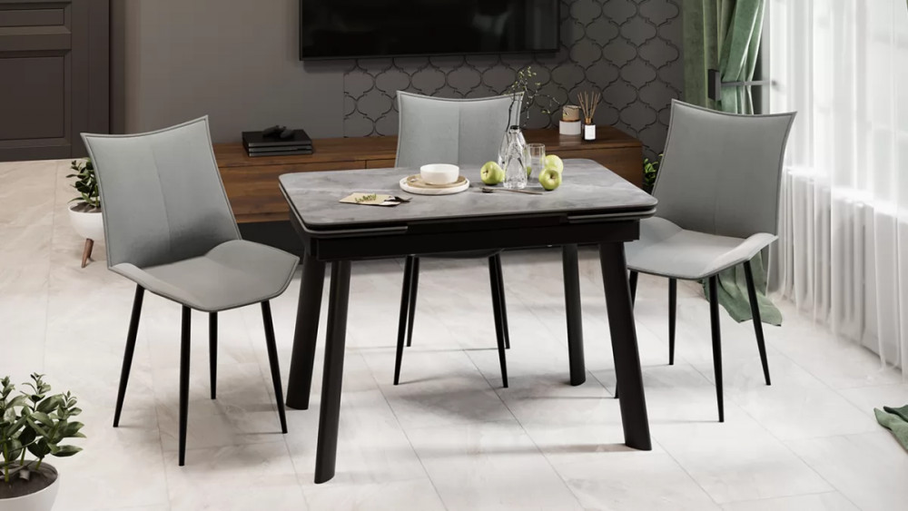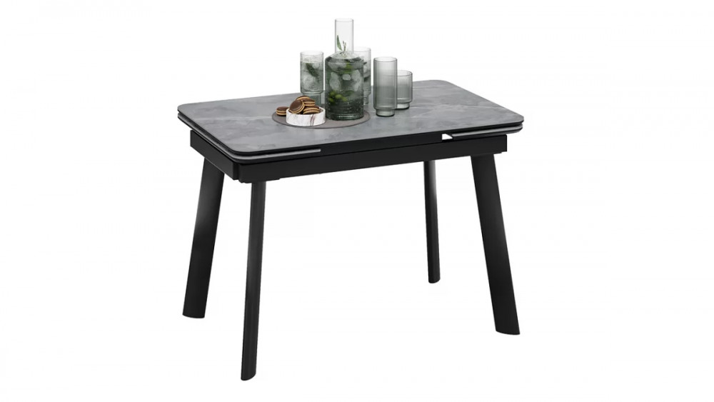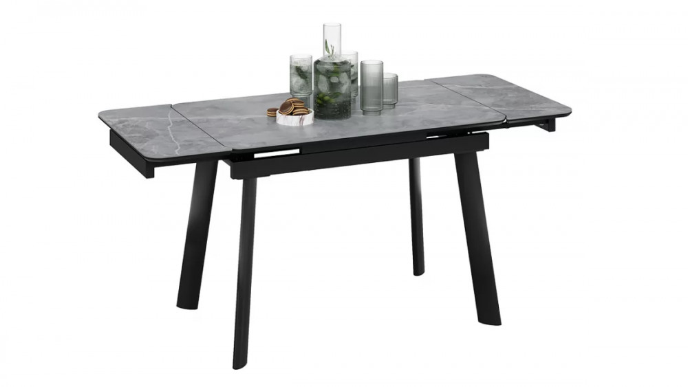 Стол обеденный «Джойс» Тип 1 Черный муар, Керамика матовая серый мрамор