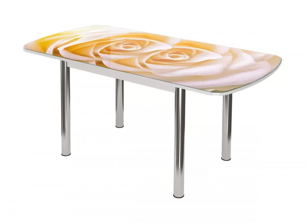 Стол Бостон-3 раздвижной, фотопечать Розы/белый/хром брифинг