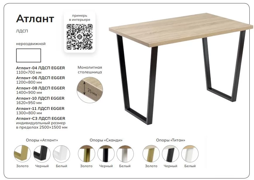 Стол (нераздвижной). Столешница текстурированное премиум лдсп EGGER - монолитная плита 25 мм, без фальшбортов и склеек.