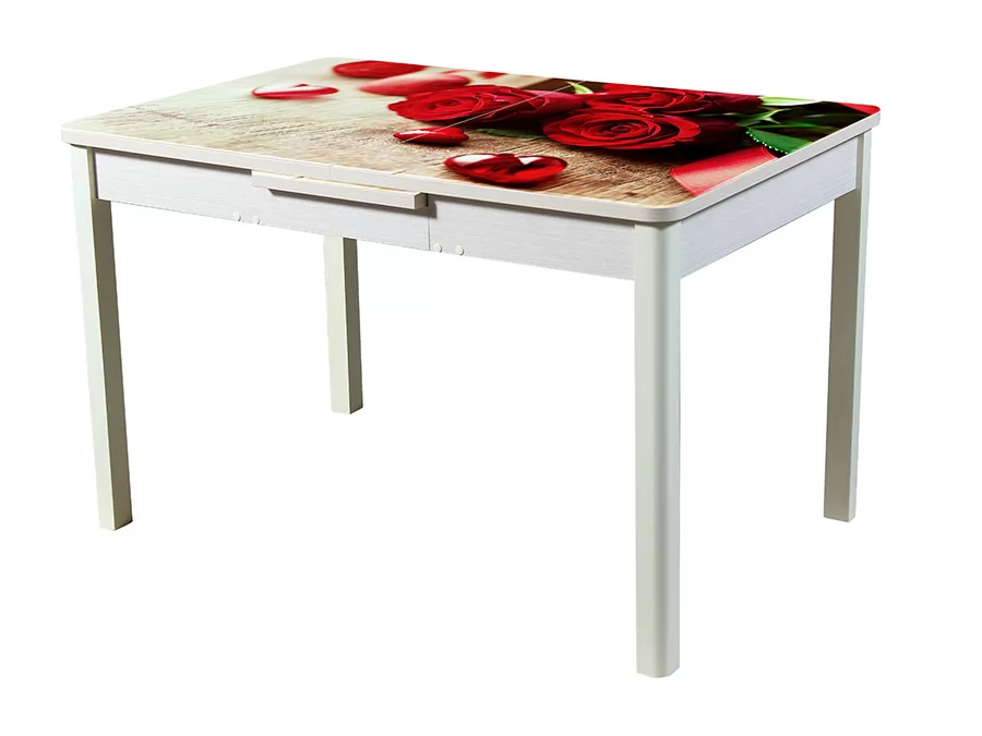 Стекло закаленное, ударо- и жаропрочное. При производстве столов применяется уникальная технология окрашивания вжигаемой в стеклянную поверхность керамической краски, которая становится его частью и не снимается даже под механическим, химическим воздействием.