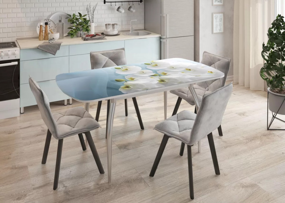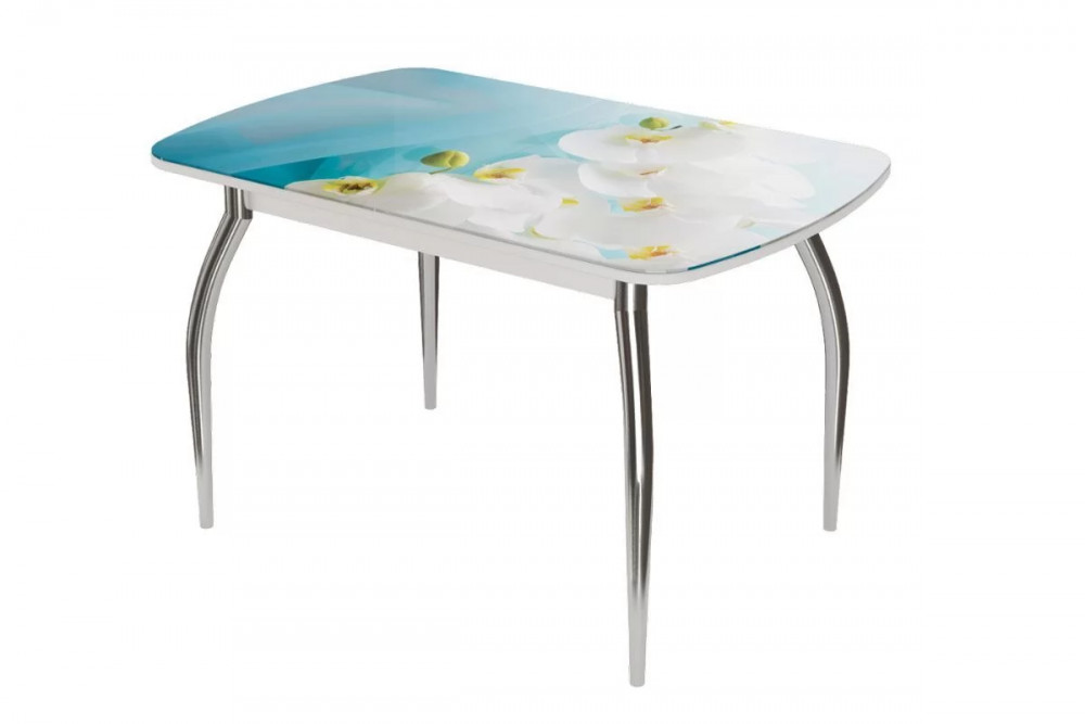 Стол Бостон-3 Белая орхидея, раздвижной, фотопечать/белый/хром триумф