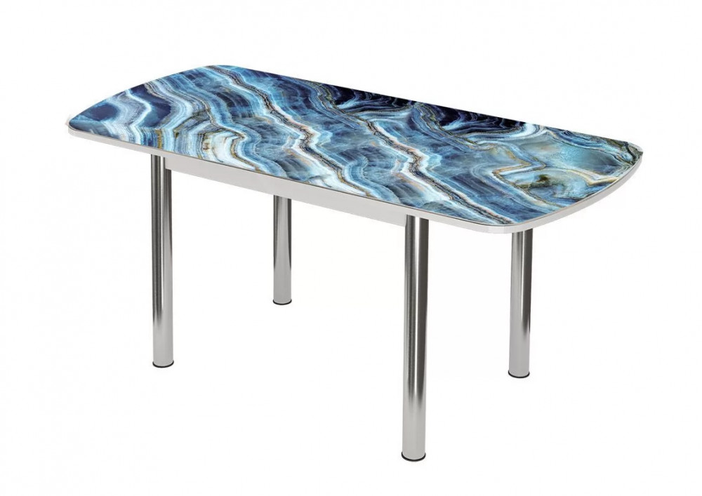 Стол Бостон-3 раздвижной, фотопечать Мрамор синий/белый/хром брифинг
