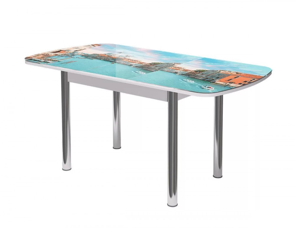 Стол Бостон-3 раздвижной, ваниль, фотопечать/хром брифинг