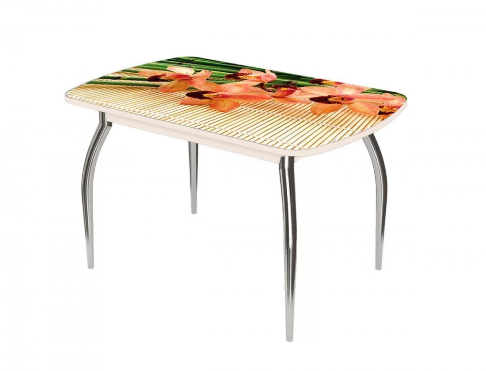 Стол овальный Бостон Розовая орхидея, 900*600 мм, фотопечать/венге/хром триумф