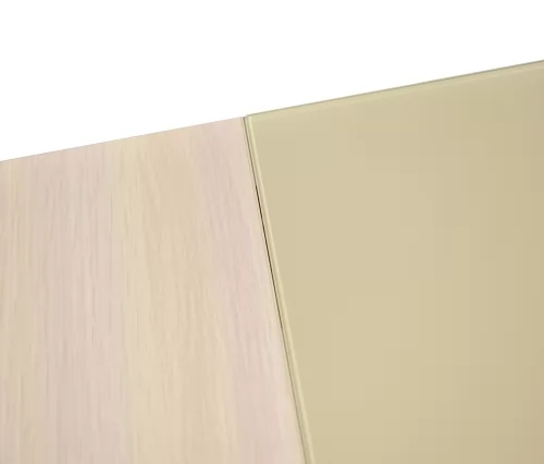 На столах со стеклом допустим незначительный разнотон (разный оттенок) между вставкой (вставками) и половинками столешниц (столешницей).