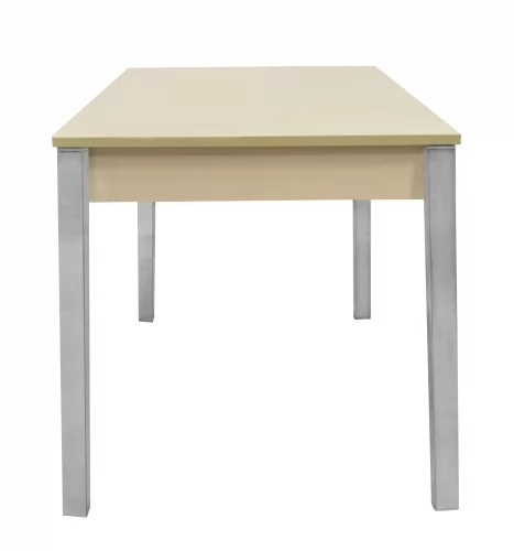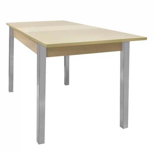 Стол раздвижной с прямоугольной столешницей. Выполнен из ЛДСП 16 мм и прочного закаленного стекла толщиной 4 мм, окрашенного немецкими керамическими красками Ferro. Высококачественное стекло изготовлено со специальной безопасной фаской Safe face. Ножки квадратного профиля идеально подойдут для интерьера с выраженной геометрией.